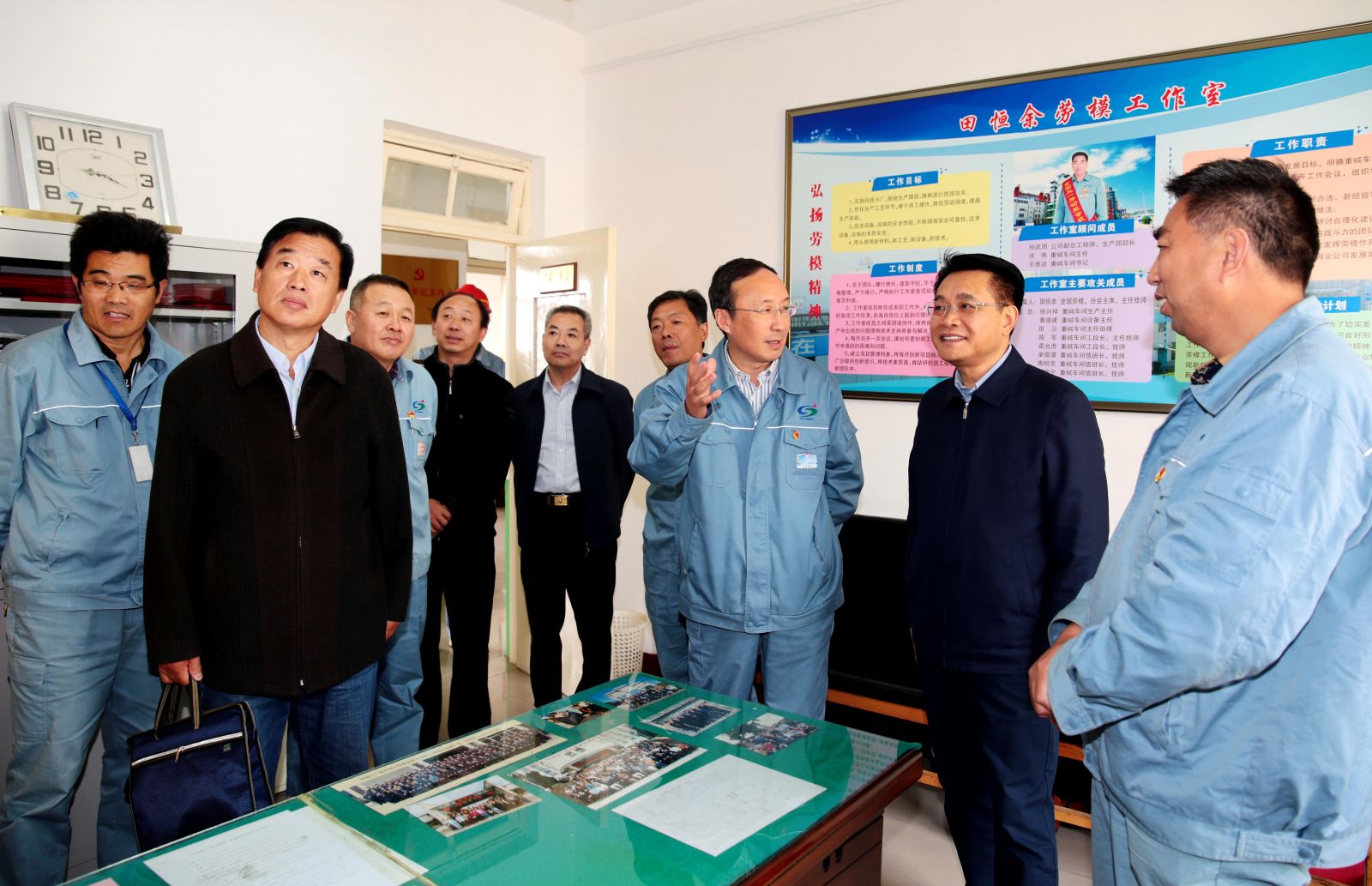 在田恒余勞模工作室,王家全詳細詢問公司勞模情況,當(dāng)他得知田恒余的“黃泥堵漏法”、“七字操作法”等小發(fā)明、小創(chuàng)造給公司帶來的豐厚經(jīng)濟效益時,他指出,自己優(yōu)秀更要繼續(xù)發(fā)揚好勞模帶頭引領(lǐng)作用,勞模工作室的關(guān)鍵在創(chuàng)新,利用好這平臺,將勞模精神和技能傳承下去,為公司持續(xù)發(fā)展提供人才保障。