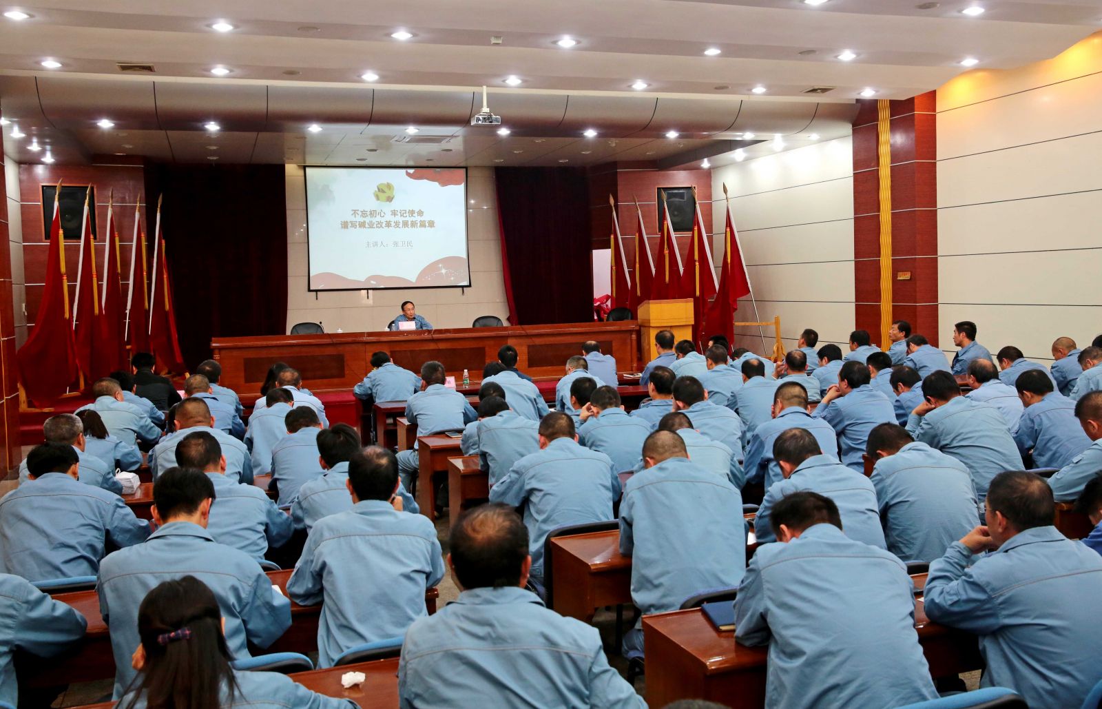 專題黨課上,公司黨委書記、董事長張衛(wèi)民以“不忘初心、牢記使命,譜寫堿業(yè)改革發(fā)展新篇章”為主題,從“守初心、擔使命,要深刻學習領會習近平新時代中國特色社會主義思想內涵”、“守初心 擔使命 要充分認識到公司與習近平總書記對國資國企工作要求的差距”、“守初心、擔使命,要善于運用新思想指導實踐推動工作”、“守初心、擔使命,需要全體黨員干部敢于斗爭敢于擔責”等四個方面,結合工作經歷、學習體會、調研情況,為參會人員上了一堂精彩、生動、嚴肅的專題黨課和形勢任務教育課。他要求全體黨員干部要用習近平新時代中國特色社會主義武裝頭腦,在本職崗位上勇于擔當、履職盡責,面對困難迎難而上,面對矛盾敢于碰硬,面對不良現象敢于亮劍,切實擔負起推進公司做大做強做優(yōu)的職責任命,共同譜寫公司高質發(fā)展的新篇章。