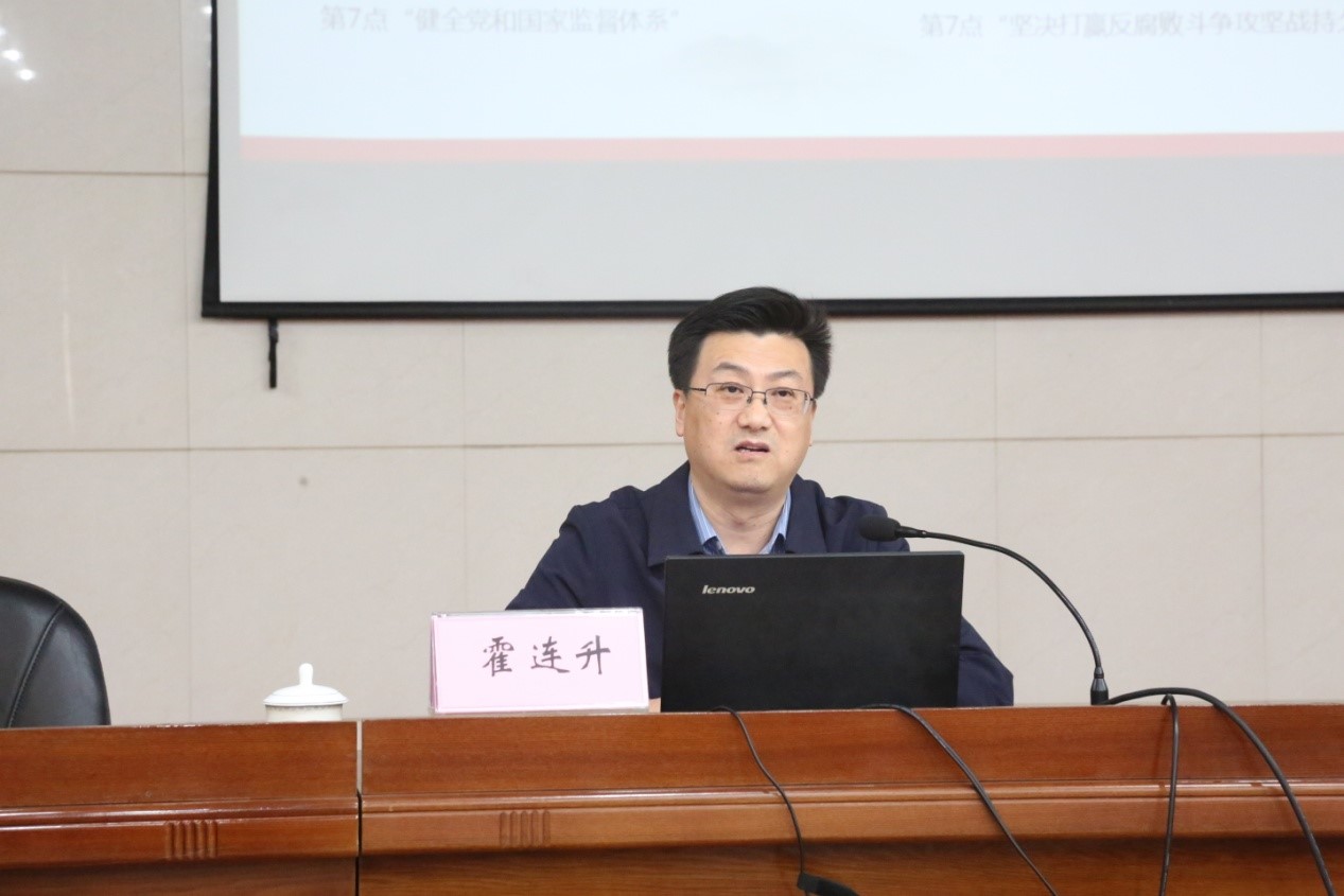 會(huì)上,市紀(jì)委霍連升主任從“順應(yīng)大勢(shì),準(zhǔn)確把握正風(fēng)肅紀(jì)反腐敗時(shí)代特征”、“深入剖析典型案例,汲取深刻教訓(xùn)”、“切實(shí)增強(qiáng)紀(jì)法觀念,堅(jiān)守清廉底線”等三個(gè)方面對(duì)公司全體黨員干部進(jìn)行了一次深刻的黨風(fēng)廉政教育。期間,霍主任引用大量的案例,對(duì)全面從嚴(yán)治黨理論和黨紀(jì)黨規(guī)做出了深刻闡釋。通過(guò)算好人生“七本賬”,逐項(xiàng)進(jìn)行對(duì)比分析,明辨利弊得失,與會(huì)黨員干部清楚地明白了該選擇什么、放棄什么,進(jìn)一步堅(jiān)定政治立場(chǎng),堅(jiān)守廉潔底線,選對(duì)自己的人生路。