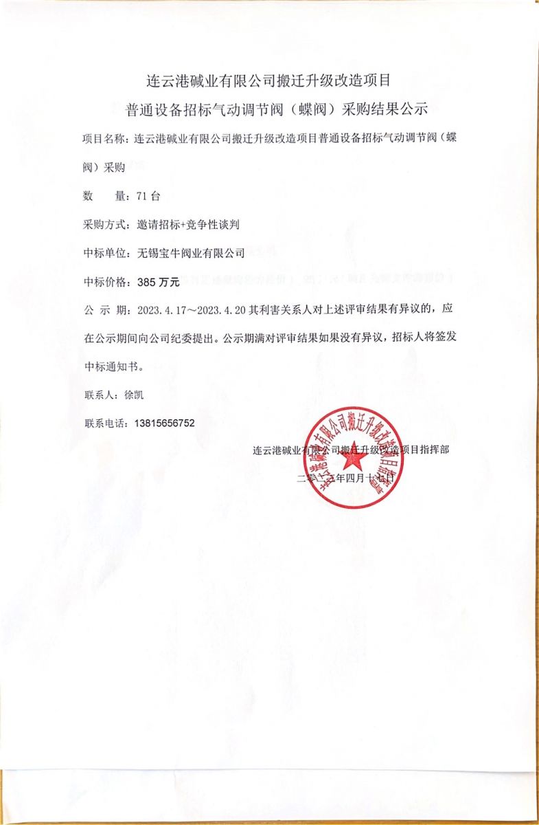 氣動(dòng)調(diào)節(jié)閥(蝶閥)采購(gòu)結(jié)果公示