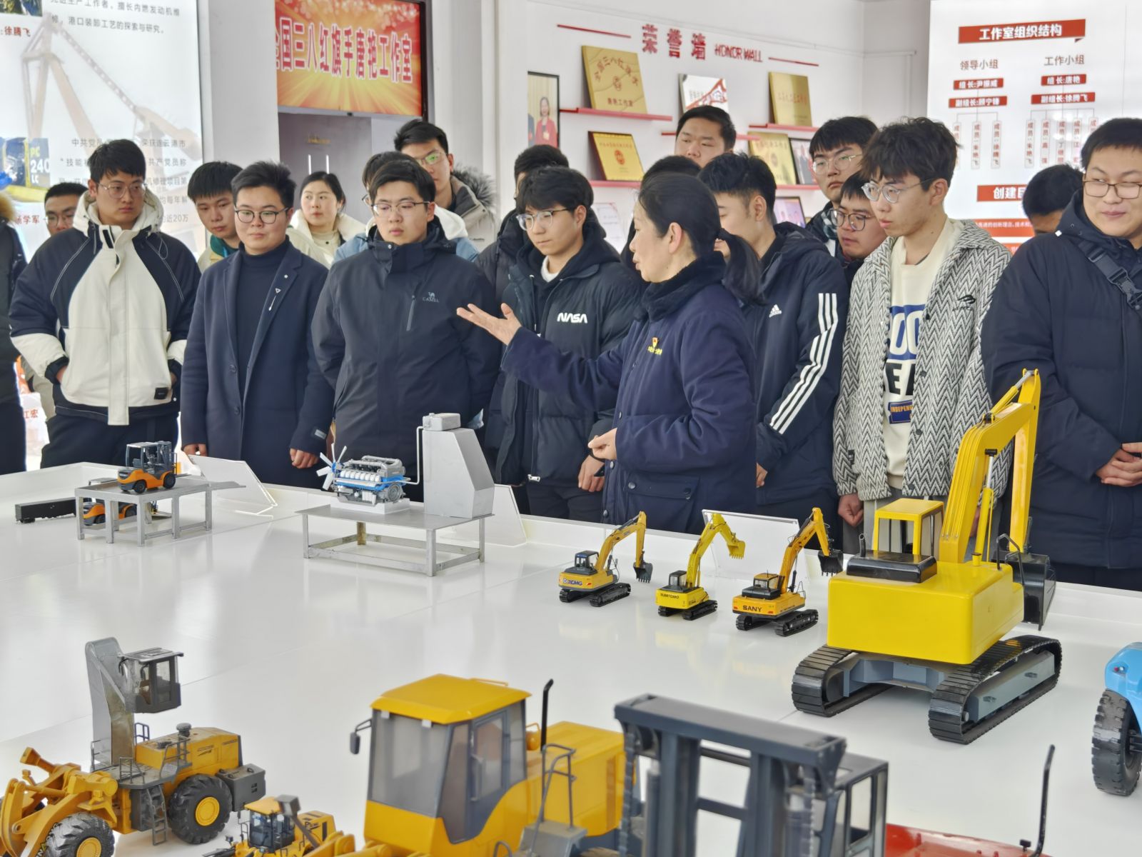 活動第一站,大家乘車前往連云港港口集團有限公司,參觀全國勞模唐艷工作室。現場,勞模唐艷為青年職工們介紹了工作室的情況,講述了自己珍貴的人生經歷。唐艷鼓勵大家要樂于奉獻、敢于創新,在平凡的崗位上一步一個腳印,才能創造不平凡的業績。她的話就像是冬日里的一抹暖陽,為青年職工們的內心點燃動力的火焰。